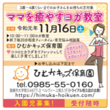 ・11月16日(土)9:30~受付 10:00~11:00 ヨガレッスン 終了後20分程度ティータイム、育児悩み相談