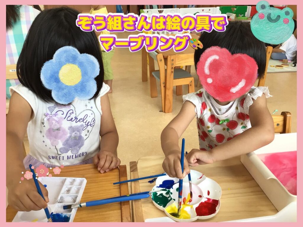 主任のつぶやき今日の活動2022年5月9日事務局今日は天気が悪いのでりす組さんとくま組さんはお部屋で風船遊びを楽しみました!!ぞう組さんは5月の製作のマーブリングを行いました。赤を中心に色を作り、てんとう虫の身体を作りました♪