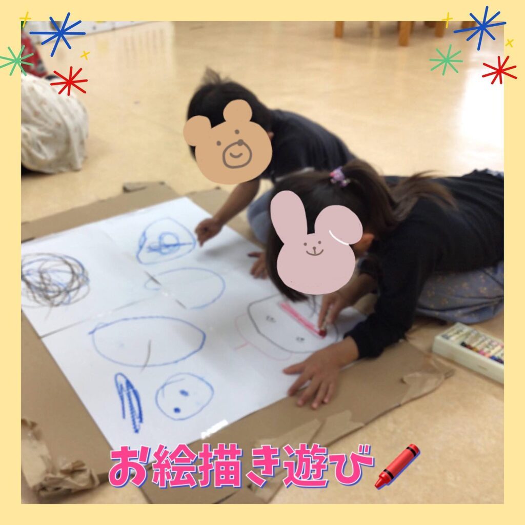 ぞう組さんは、段ボールや模造紙に描いたりと感触を楽しんでいましたよ(^^♪
