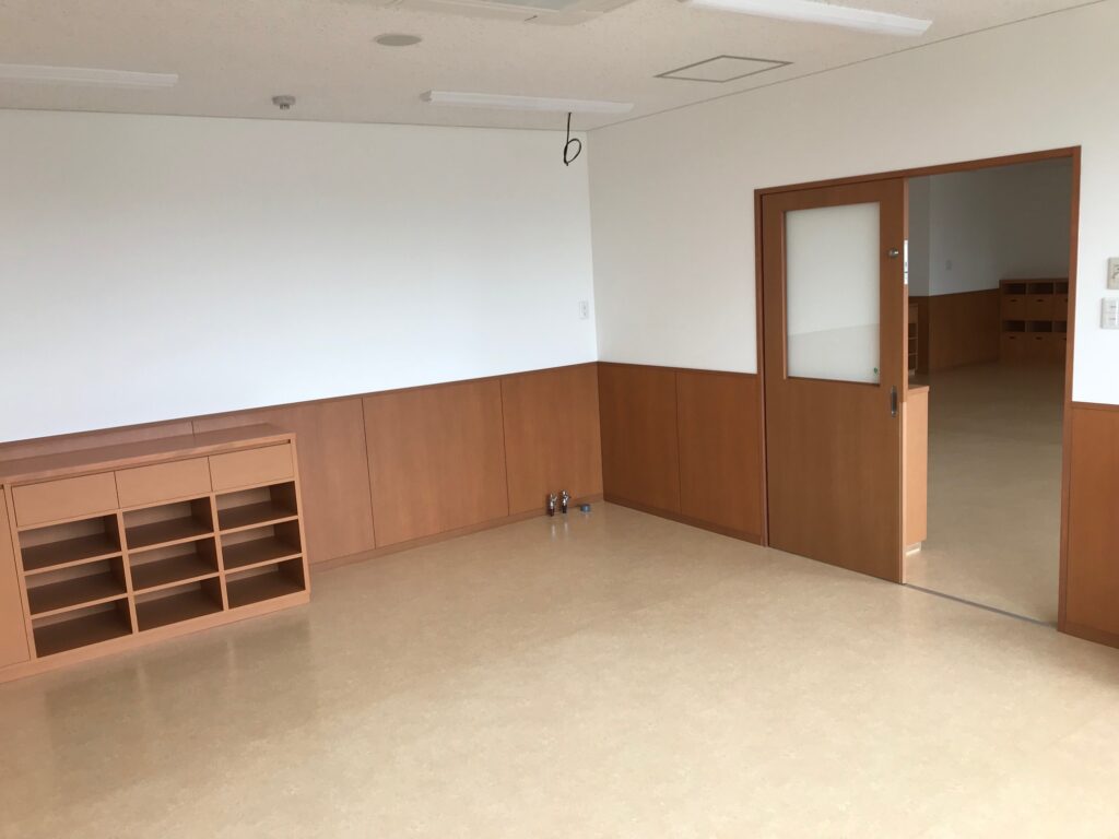 保育室、職員室、厨房室などの写真です。