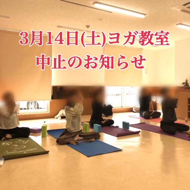 3月14日(土)に予定しておりましたママの為のヨガ教室は、新型コロナウイルスの感染拡大予防の為、中止とさせていただきます。