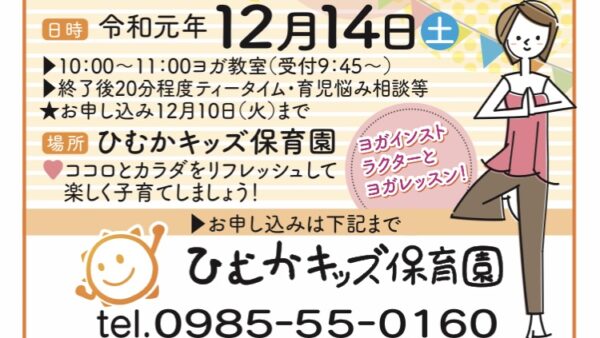 第4回ヨガ教室は12月14日(土)開催です。参加無料ですのでぜ