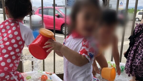 梅雨明けも間近になり、保育園でも水遊びが始まりました。暑い日差しの中、