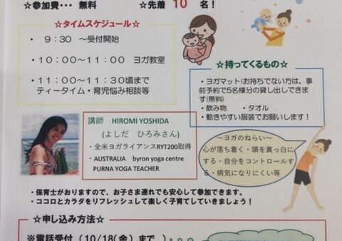 10月19日(土)開催予定の産後ヨガ教室ですが、あと数名の空きがござい
