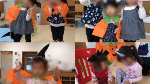 ハロウィンの日にみんなで仮装をしました。女の子はカチューシャを